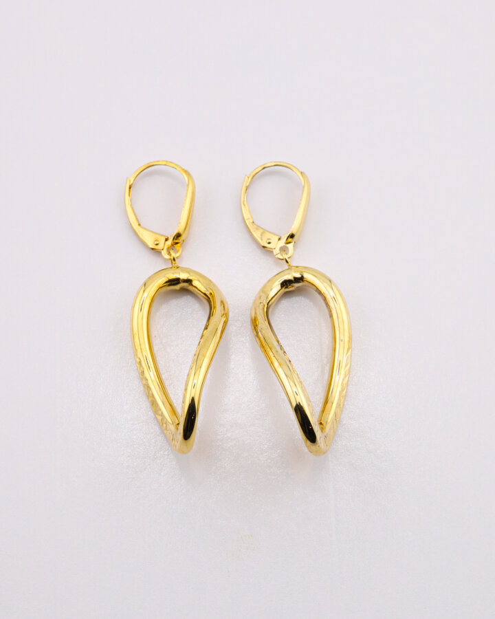 Celozlaté visiace oválne náušnice s gravírom