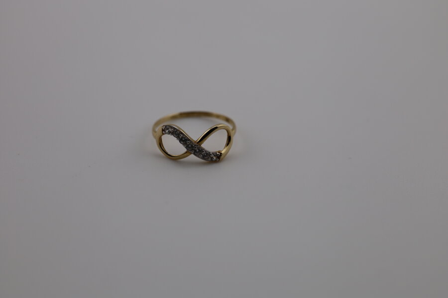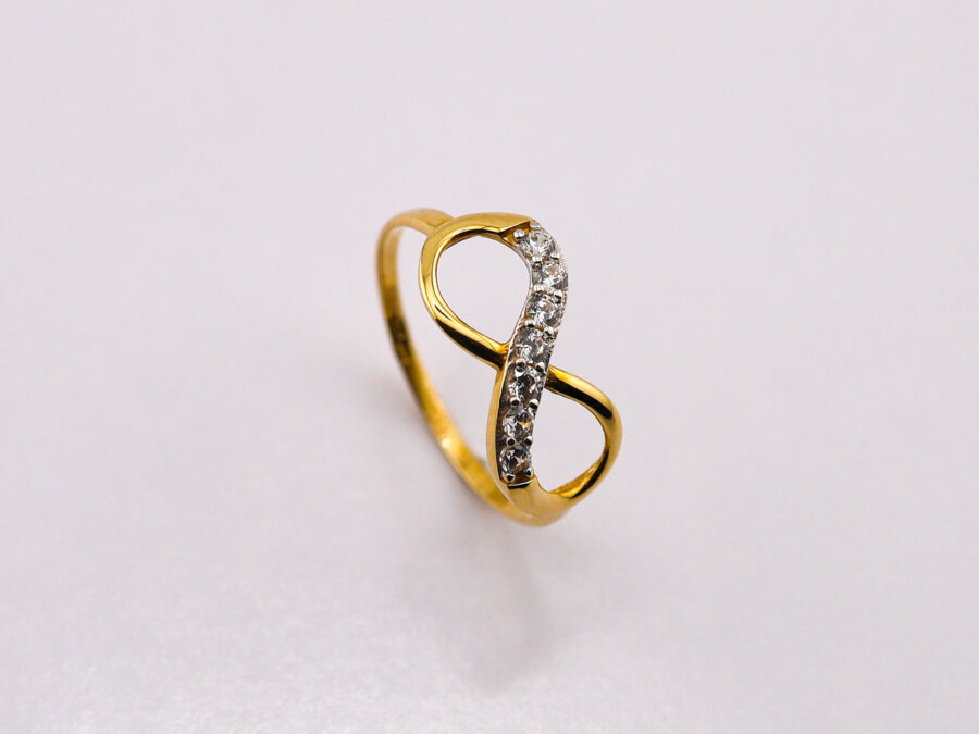 Zlatý prsteň nekonečno 14K je vyrobený z 14-karátového žltého zlata (585/1000) a zdobený čírymi zirkónmi na jednej strane symbolu nekonečna. Predstavuje večnú lásku, rovnováhu a harmóniu – ideálny ako darček s významom.