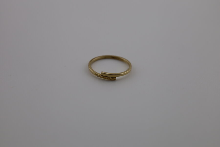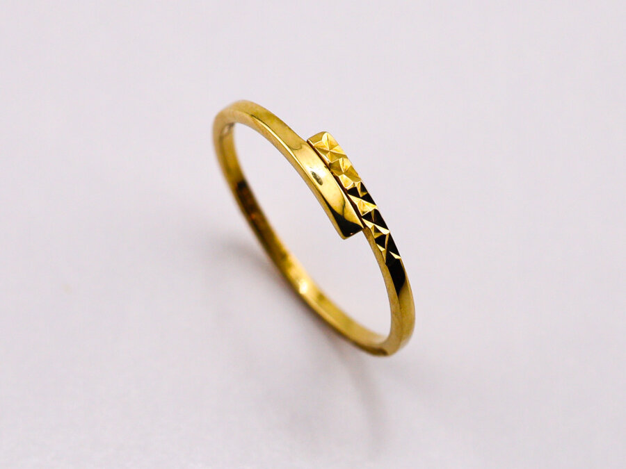 Dámsky prsteň zo žltého zlata 14K s jemným gravírovaním. Elegantný minimalistický šperk s efektom diamantového lesku.