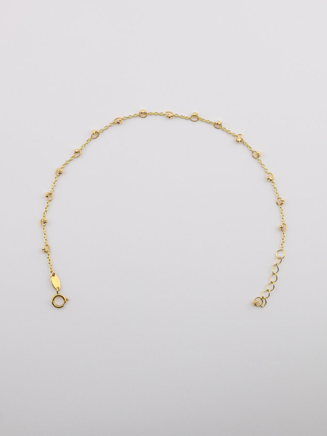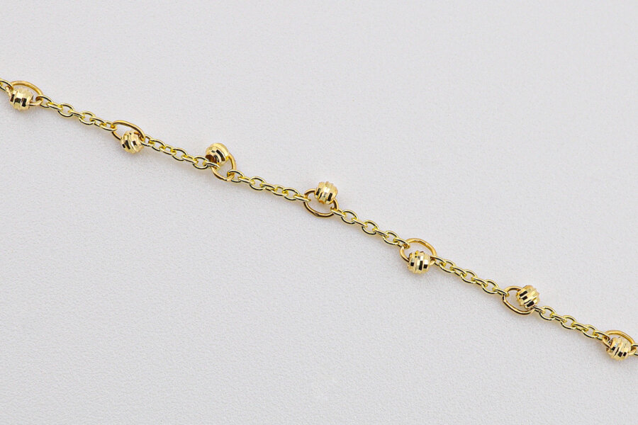 Elegantný náramok zo žltého zlata zdobený lesklými guľôčkami, ktorý pôsobí nadčasovo a luxusne. Jemný dizajn vyniká čistotou línií a precíznym spracovaním.
