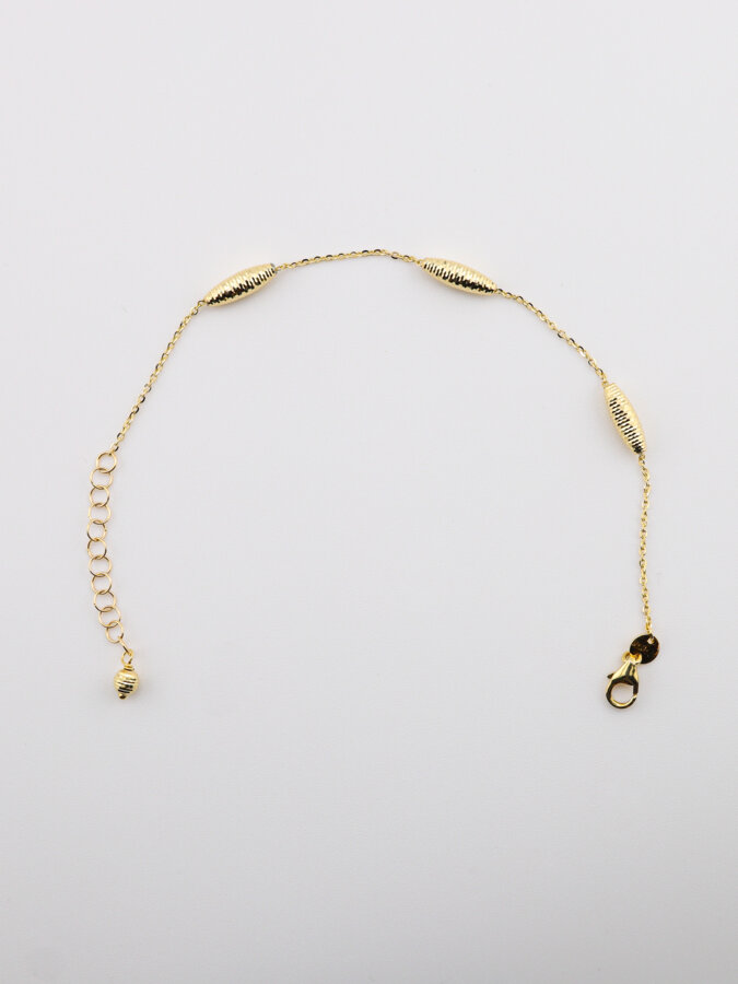 Elegantný zlatý náramok – decentný šperk, ktorý zvýrazní krásu zápästia a dodá outfitu luxusný dotyk.