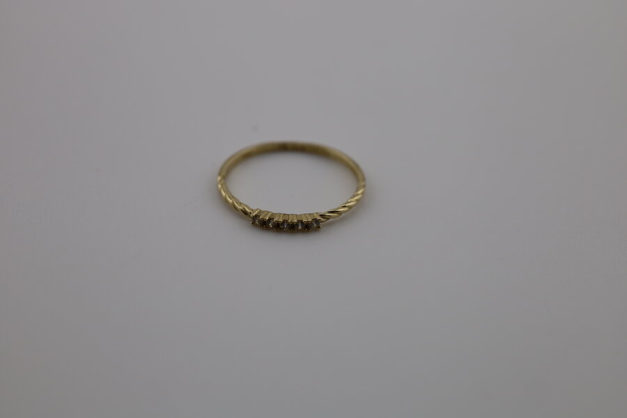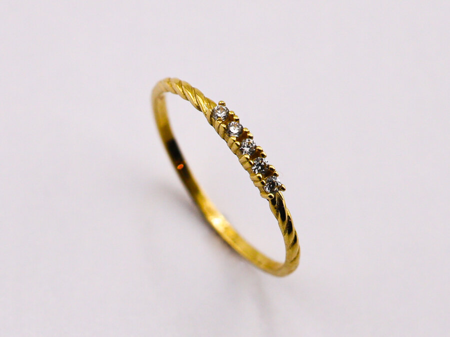 Tento prsteň je jemný zlatý model zo žltého zlata s piatimi drobnými zirkónmi osadenými v línii. Decentný, elegantný a ideálny pre každodenné nosenie alebo ako doplnok k zásnubnému prsteňu.