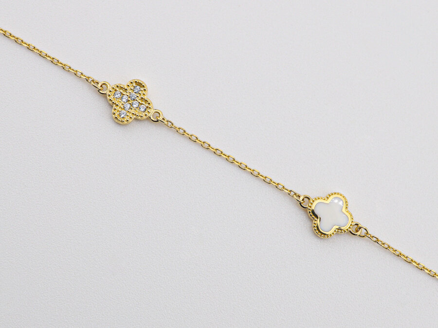 Minimalistický a súčasný náramok Van Cleef so štvorlístkom spája symboliku šťastia s moderným dizajnom. Jemný a elegantný šperk je ideálny na každodenné nosenie alebo vrstvenie s ďalšími šperkami. Lesklé zlato dodáva luxusný nádych, zatiaľ čo štvorlístok pôsobí hravo a sviežo – dokonalý doplnok pre ženy, ktoré oceňujú štýl, eleganciu a osobný význam šperku.