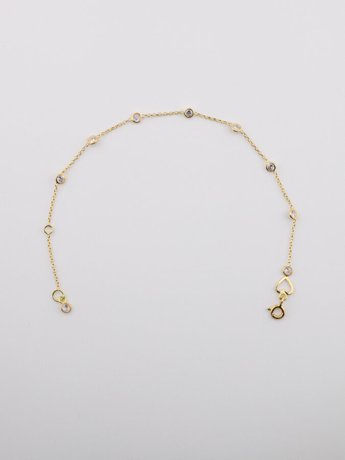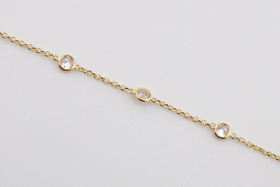 Zlatý náramok s jemnými kamienkami, ktorý dodá luxusný lesk a nadčasový štýl každému outfitu.
