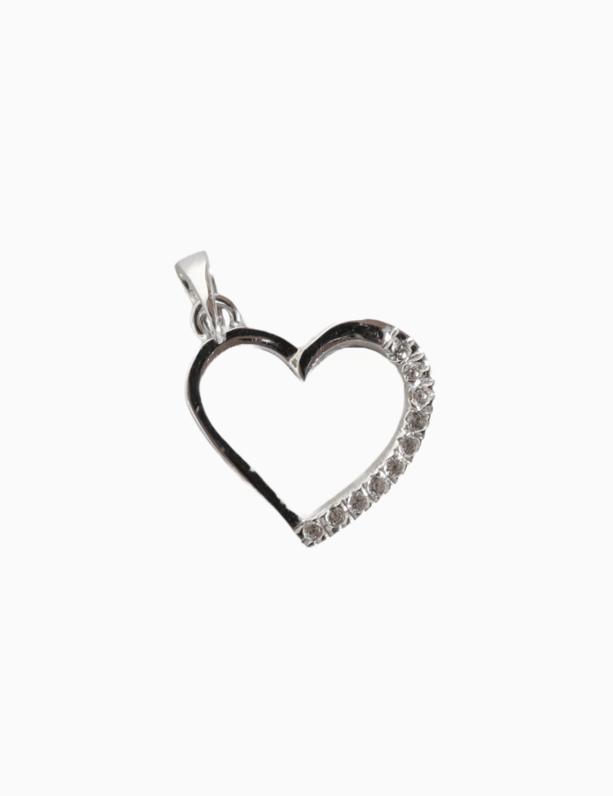 Elegantný prívesok z bieleho zlata zhotovený v tvare srdca zdobí z jednej strany línia trblietavých zirkónov.