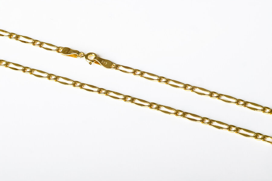 Retiazku tvoria podlhovasté oválne očká, pravidelne sa striedajúce s okrúhlymi očkami. Použité zapínanie je na perový krúžok.
