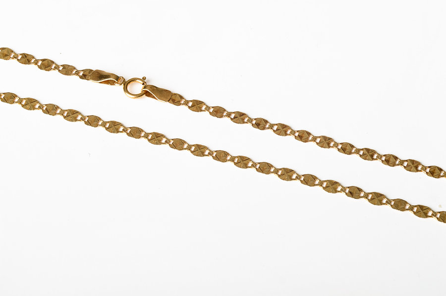 Elegantná dámska zlatá retiazka je vytvorená z plochých gravírovaných očiek žltého 14 karátového zlata. Ligotavá retiazka zaujme už na prvý pohľad.
