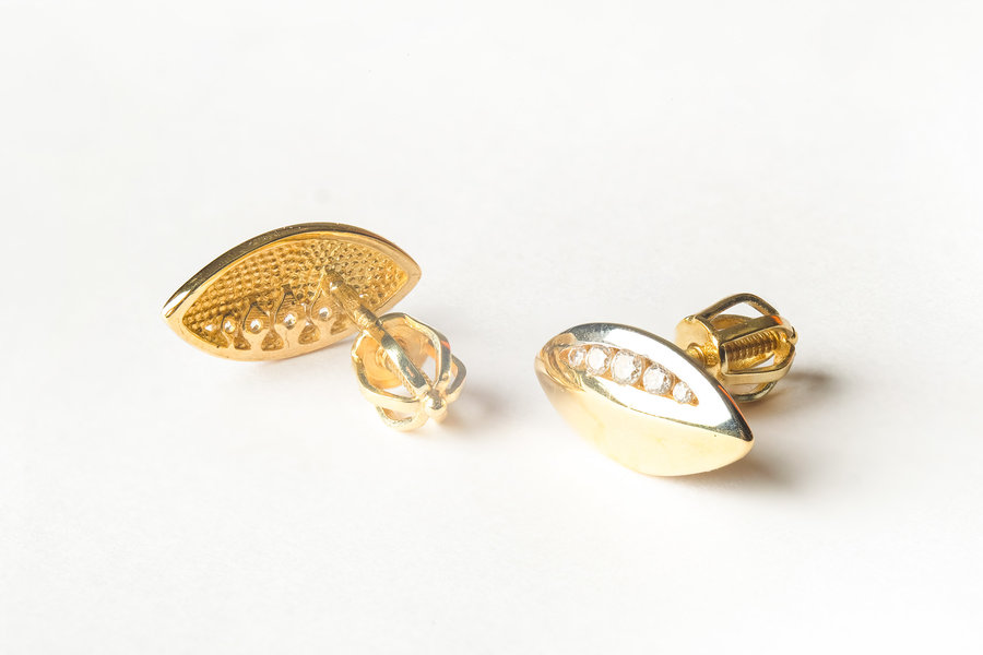 Veľmi pekné dámske náušnice sú zhotovené kombináciou žltého a bieleho zlata, ktoré zdobia biele zirkóny.