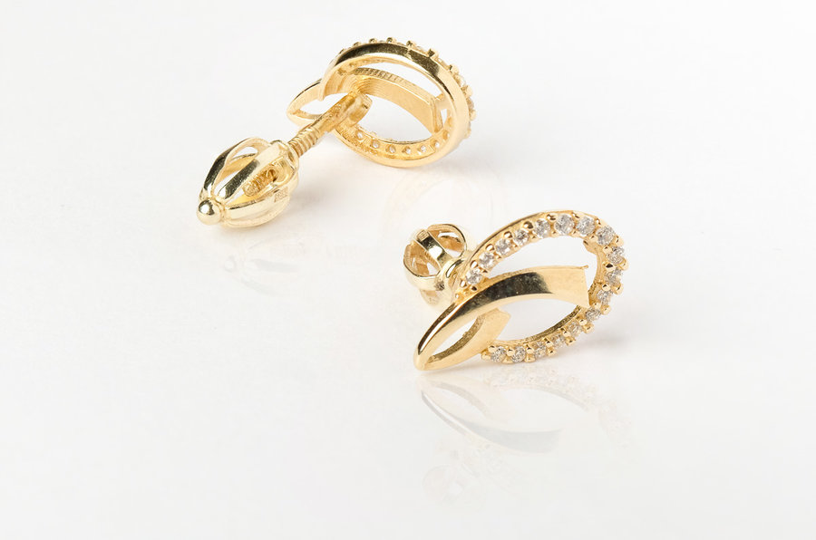 Dámske zlaté náušnice sú zo žltého 14 karátového zlata s celkovým rozmerom 1,3cm. Náušnice zdobia biele okrúhle zirkóny. Zapínanie je šrubovacie.