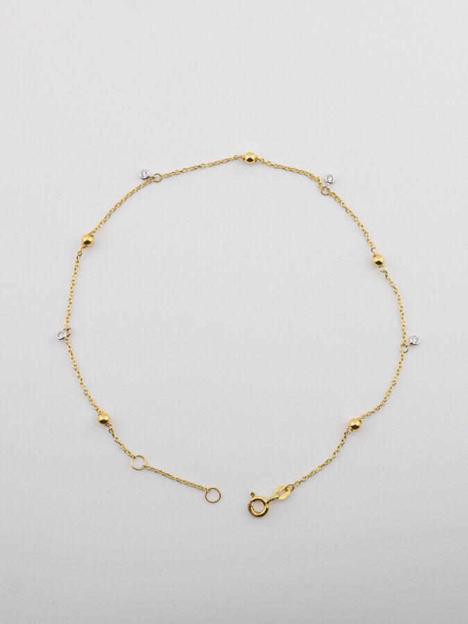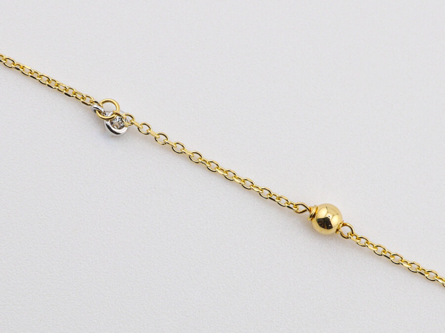 Zlatý náramok s guľôčkou a kamienkom v bielom zlate. Spojenie jemnosti, lesku a nadčasovej elegancie.