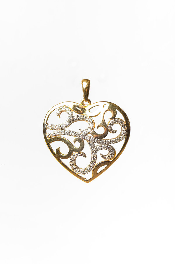 Originálny kúsok v podobe zlatého srdca zdobeného bielymi zirkónmi poteší každú dámu, ktorá ocení jedinečné šperky.