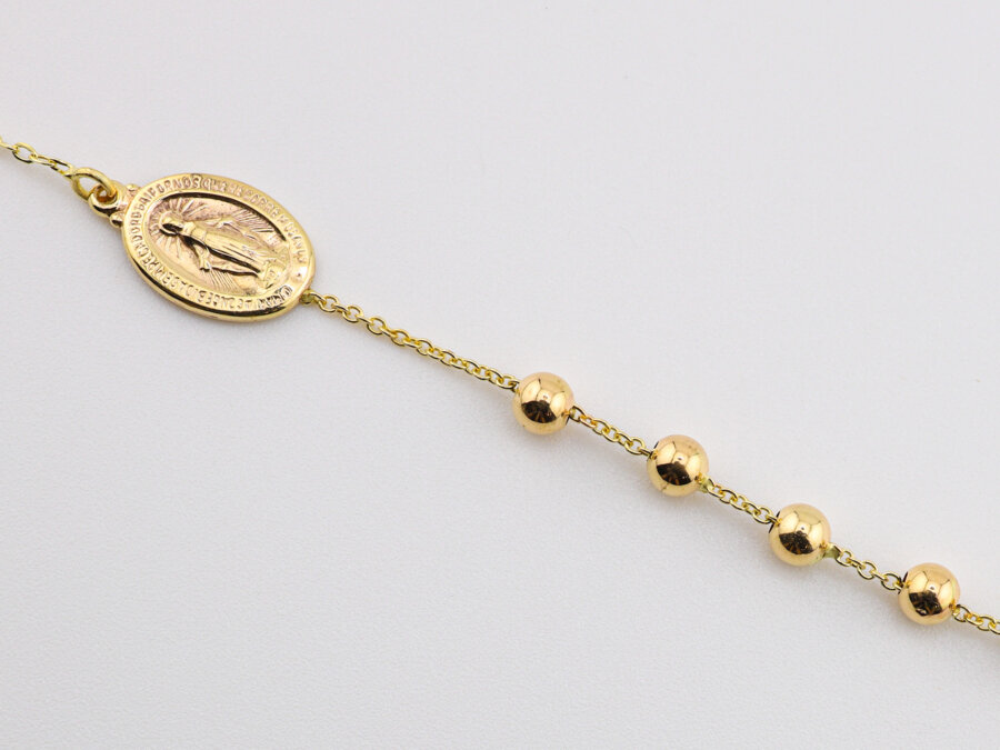 Jemná retiazka s pravidelnými guľôčkami a príveskami v podobe krížika a medailónu s Pannou Máriou vytvárajú nadčasový doplnok, ktorý podčiarkne každý outfit. Ideálny pre každodenné nosenie aj špeciálne príležitosti.